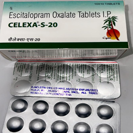 CELEXA S 20 contains Escitalopram 20 mg, a potent Selective Serotonin Reuptake Inhibitor (SSRI) used in the treatment of moderate to severe depression and anxiety-related disorders. It is known for its high efficacy, rapid symptom control, and superior safety profile, especially for long-term therapy.